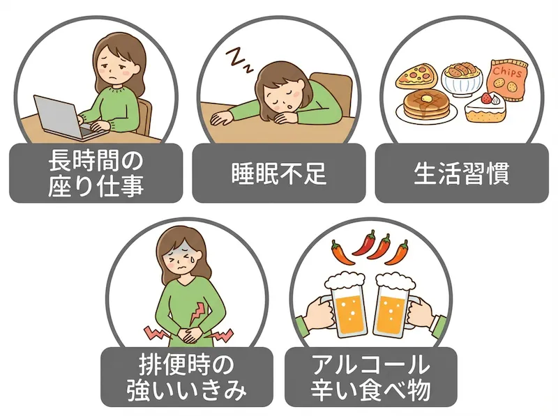 痔の原因を大別すると以下のようになります。