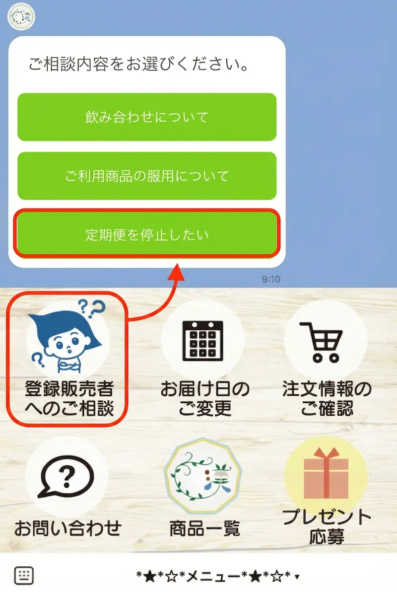 LINEから簡単に定期便解約ができるんです!解約方法を複雑にして無理やり継続させようという企業が多い中、めちゃくちゃ良心的だと思いました。