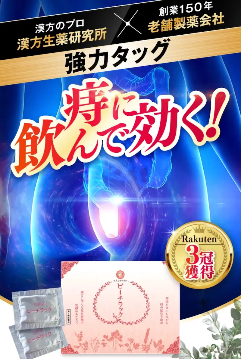 このように比較すると、生薬の量が一番多い漢方生薬研究所のピーチラックが痔には一番効く薬であるにも関わらず一番安くて一番お得という結果になりました。